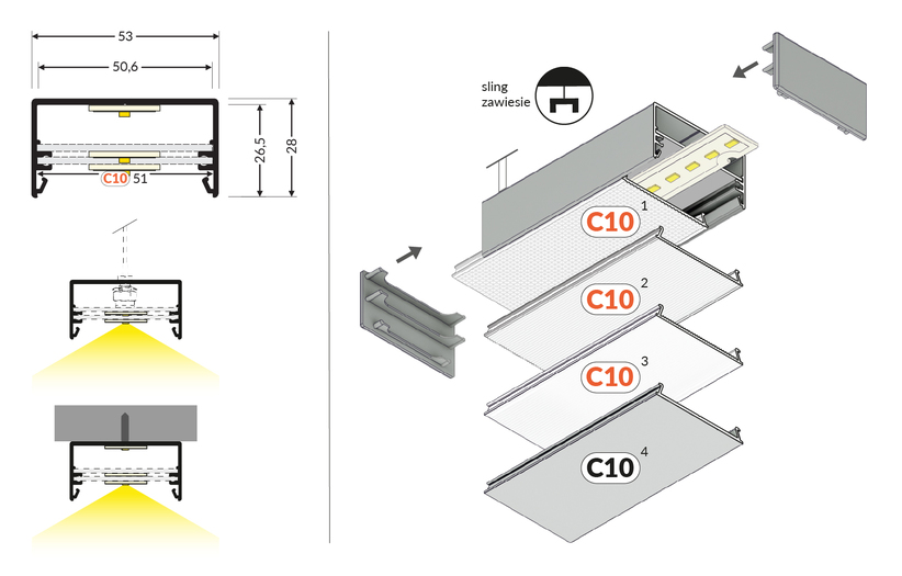 | Colour | Raw Aluminium, anodized, black anodized, white painted |